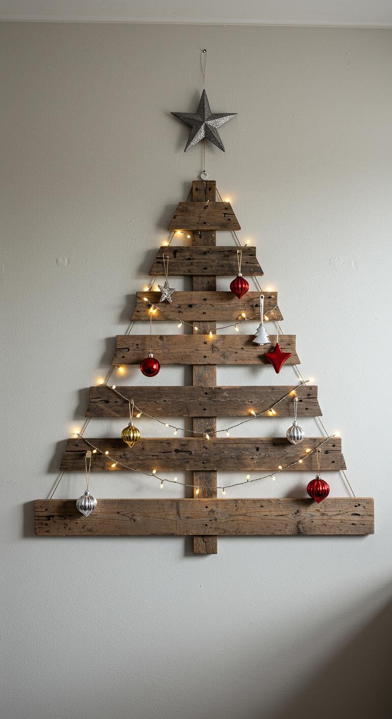 If you’re tight on space or just want something unexpected, try an alternative-shaped tree. Wall-mounted designs or geometric plywood structures are chic, modern, and perfect for small spots. You can deck them out with lights and ornaments just like a regular tree. Using recycled materials keeps things budget-friendly and eco-conscious. This approach lets your creativity fly and brings a fresh twist to holiday decorating that’ll definitely catch eyes.