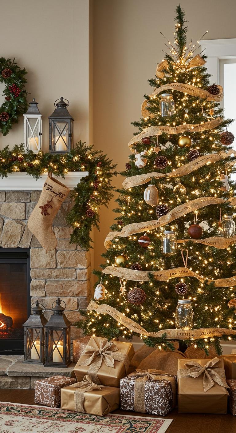 If cozy country vibes are your thing, a rustic farmhouse tree is like a warm hug in decor form. Go for a lush, full tree decked out with burlap ribbons, pinecones, and cute wooden ornaments. Pair that with soft white string lights for a gentle glow that feels like home. You can even reuse stuff you already have—mason jars filled with fairy lights or some festive greenery to amp up the charm. And don’t forget a burlap tree skirt to keep things cozy and inviting all around.