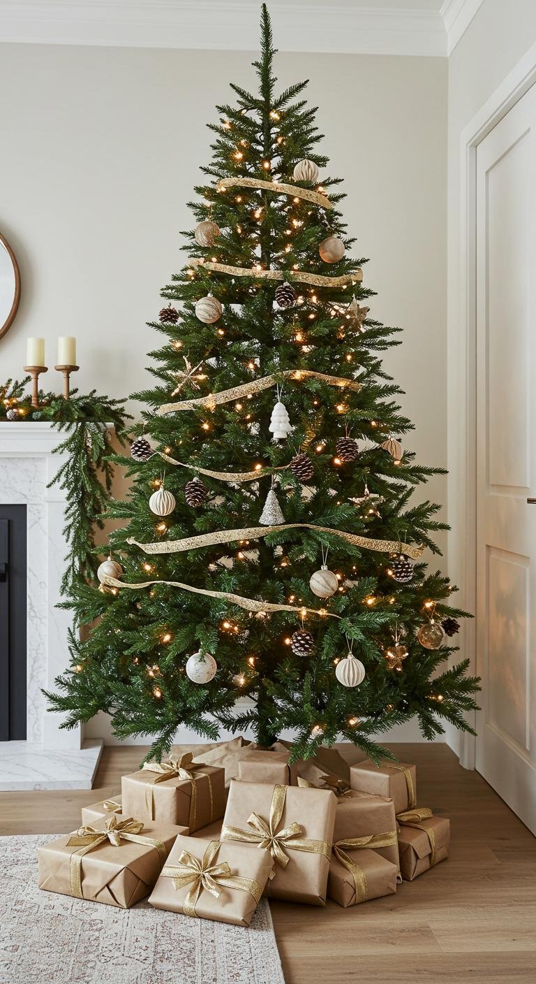 Nothing beats bringing a bit of the outdoors inside during the holidays. Pine branches, holly, eucalyptus—you name it—can give your tree that fresh, authentic touch. Collect some pinecones and spray them gold or silver for a festive sparkle. Nestle these natural goodies between ornaments or twist fresh greenery into garlands for a layered, rustic look that feels both cozy and elegant.