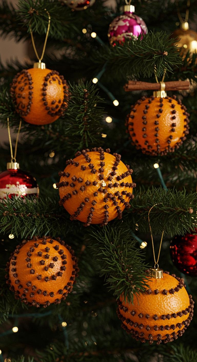 Those clove-studded oranges, aka pomanders, aren’t just pretty—they fill your space with that mouthwatering holiday scent. They’re super easy to make at home and kind to your wallet. Just grab some fresh oranges, poke in cloves in fun patterns, tie a ribbon around them, and hang them right on your tree. The aroma is nostalgic and cozy, instantly transporting you to holiday moments from years ago.