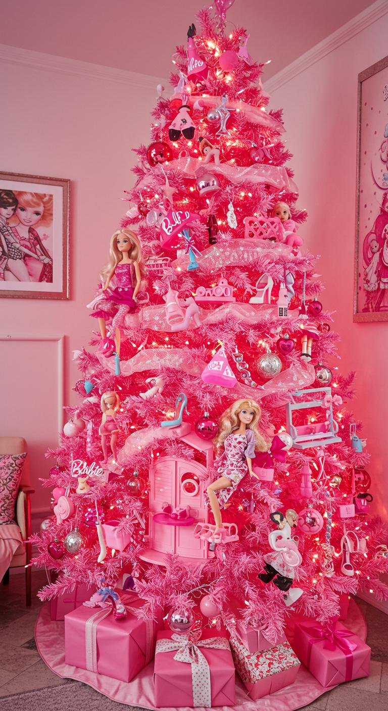 What’s more fun than capturing Barbie’s iconic Dreamhouse charm? Deck out your tree with tiny high heels, miniature purses, and dollhouse-sized furniture pieces. Feeling crafty? Turn Barbie packaging or printed images into DIY ornaments—scrapbook paper is your best friend here. This theme is perfect for creative fam jam moments, turning decorating into an imaginative party where everyone’s ideas shine.