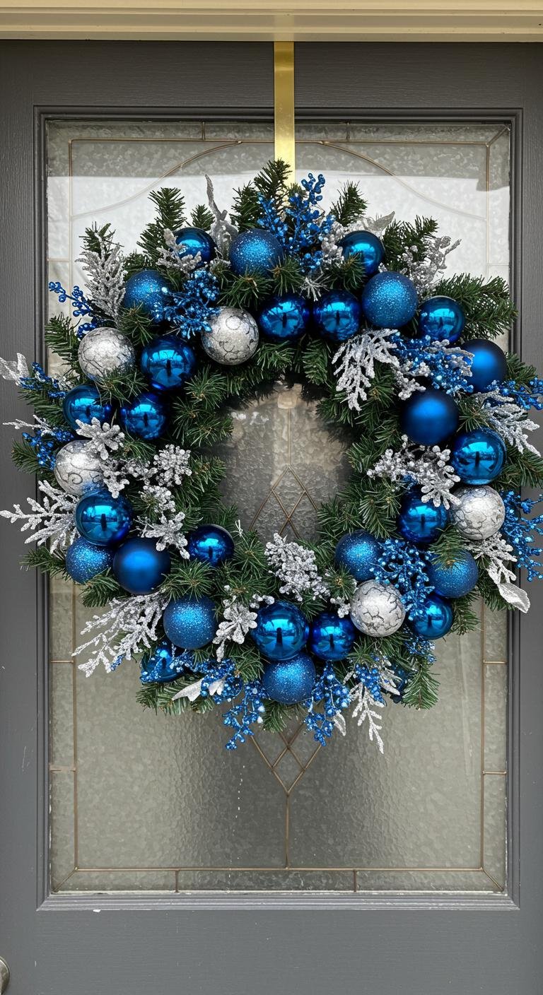 A stunning festive blue and silver wreath can instantly elevate your holiday decor, creating a striking focal point for your front door or walls.