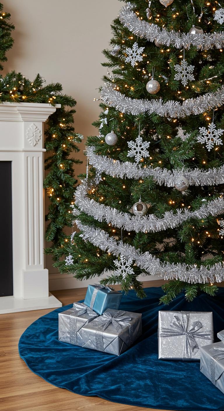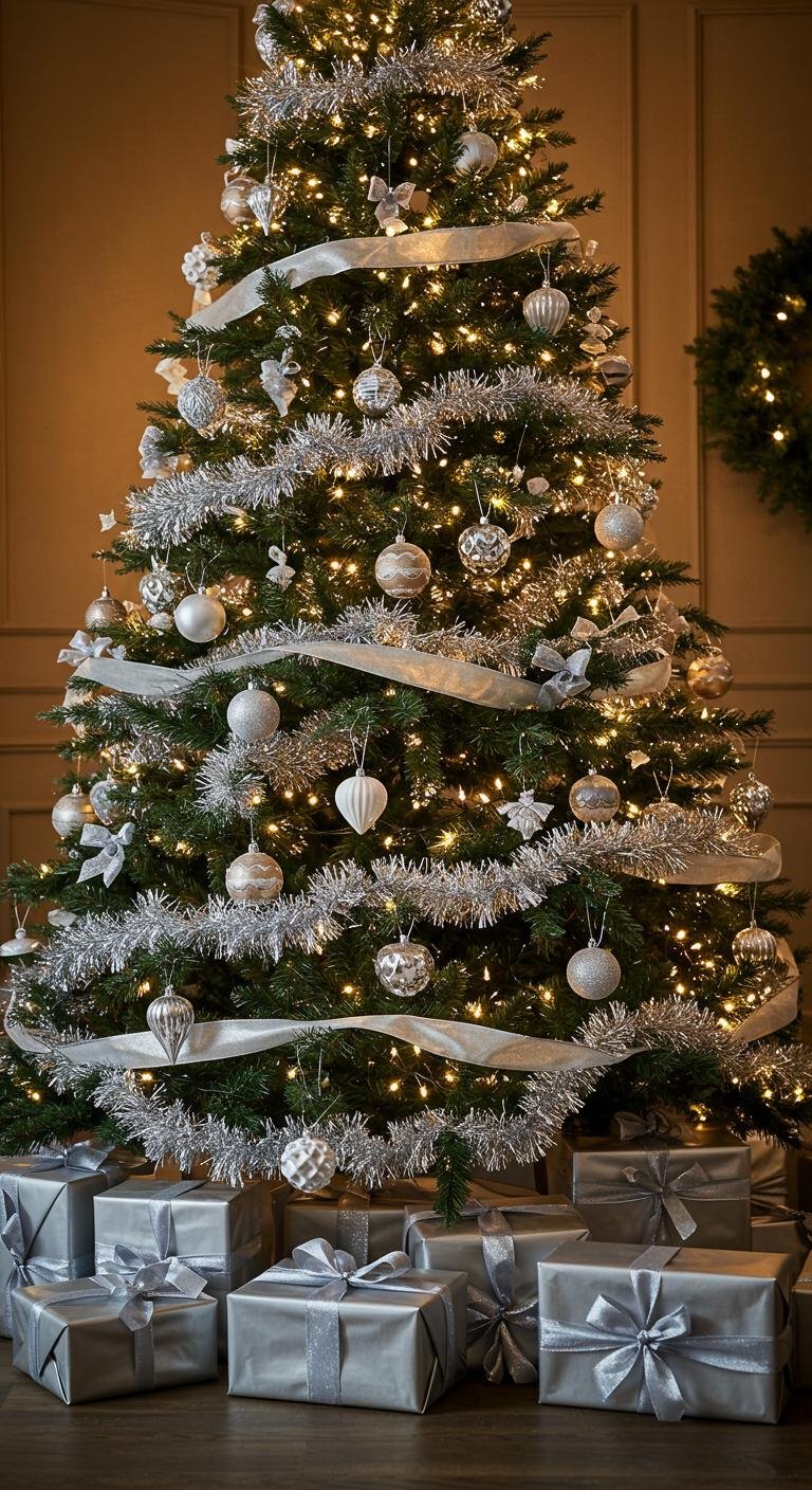 Silver tinsel and ribbon accents bring a touch of glamour to your holiday decor, instantly elevating the festive atmosphere.