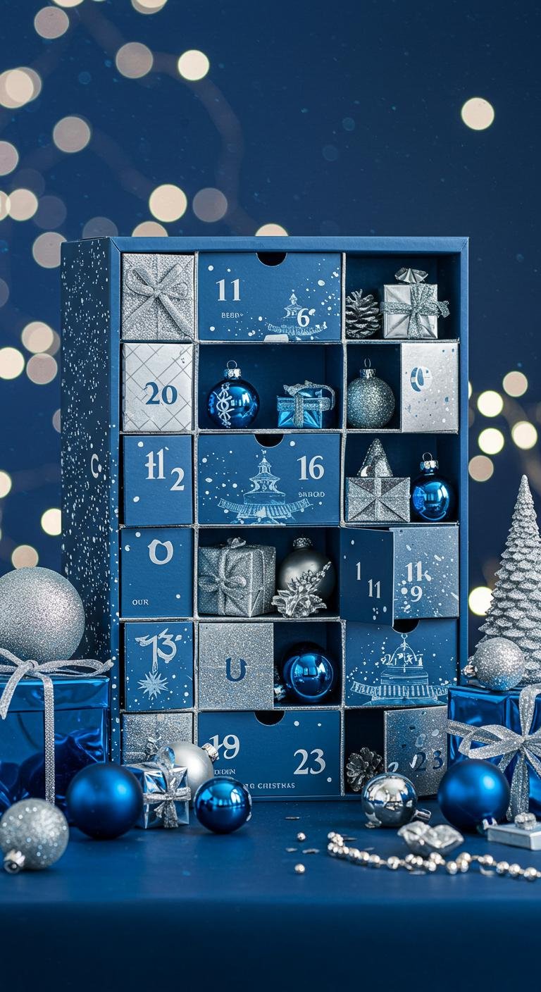 A stunning blue and silver themed advent calendar adds a splash of elegance and anticipation to your holiday season.