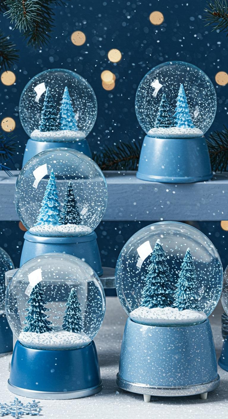 Handcrafted blue snow globes add a magical touch to your holiday decor, transforming any space into a serene winter wonderland.