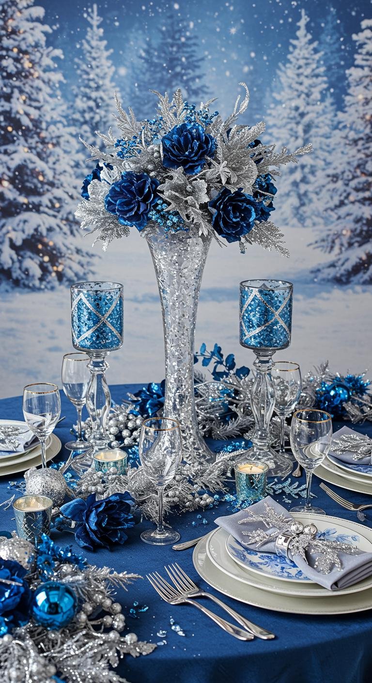 As you plunge into the holiday season, consider incorporating sparkling silver and blue arrangements that bring elegance and sophistication to your decor.