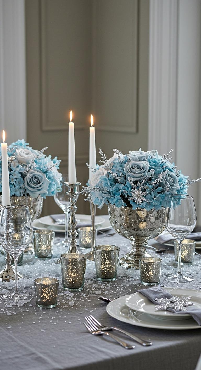 When you want to elevate your holiday dining experience, icy blue centerpieces become an instant showstopper.