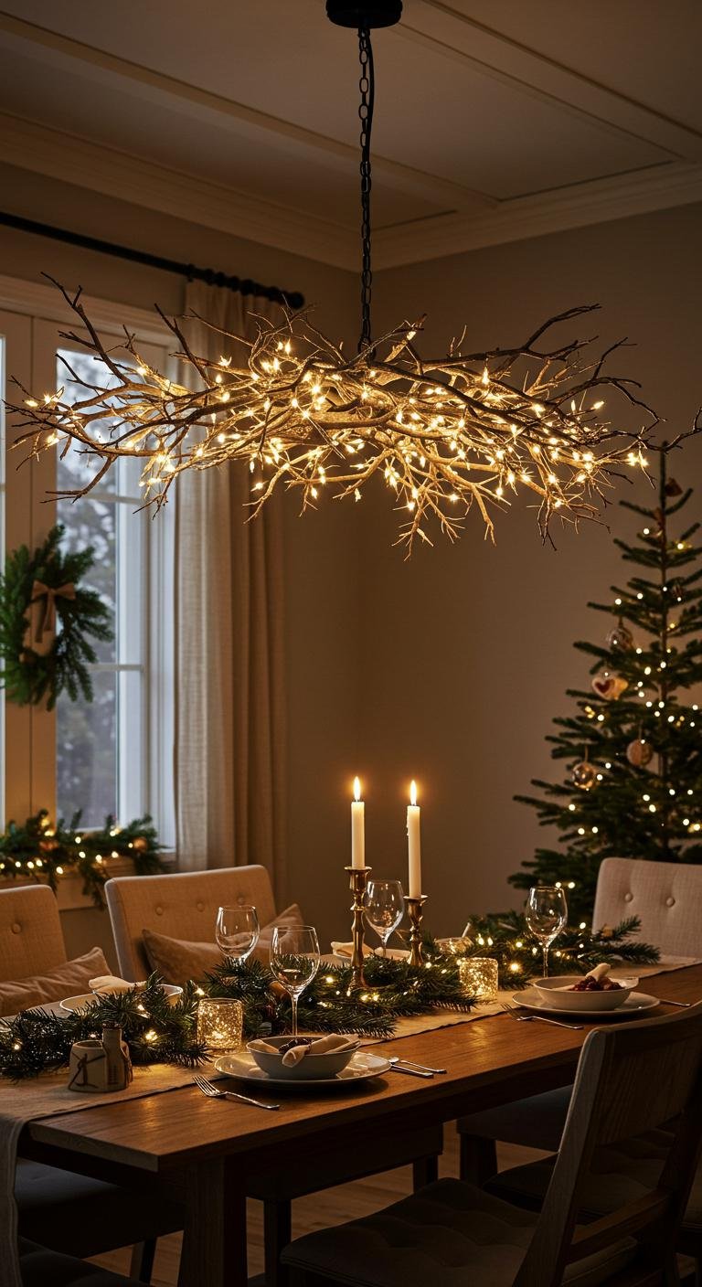Imagine a stunning focal point hanging above your dining table—this is where a rustic branch chandelier makes its entrance.