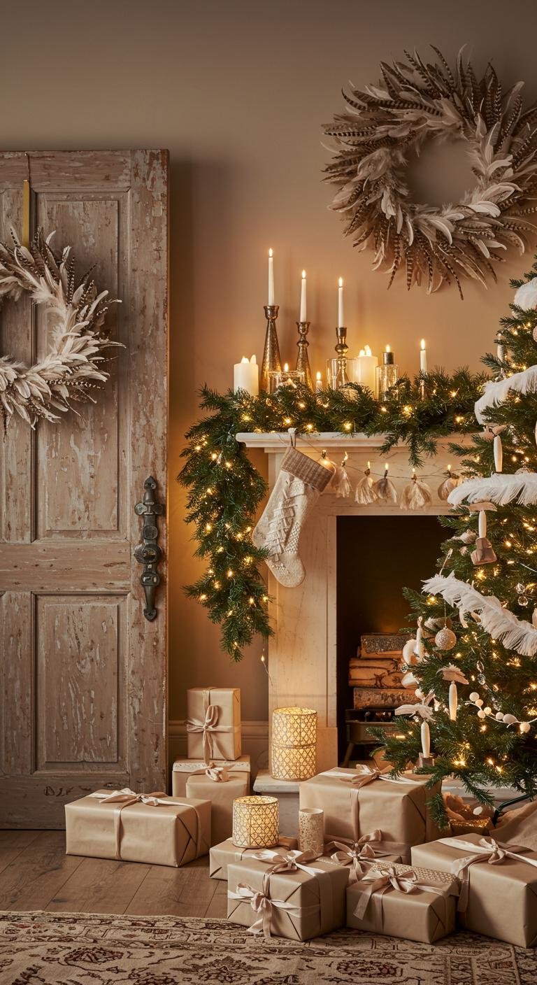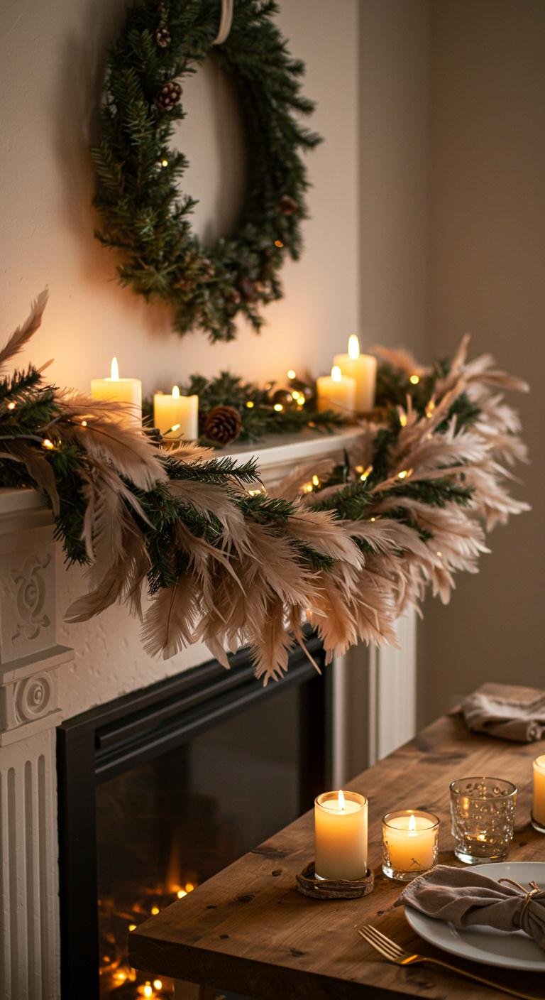 Don’t forget feather garlands draped artfully across your mantel or tree, adding a soft and playful touch.