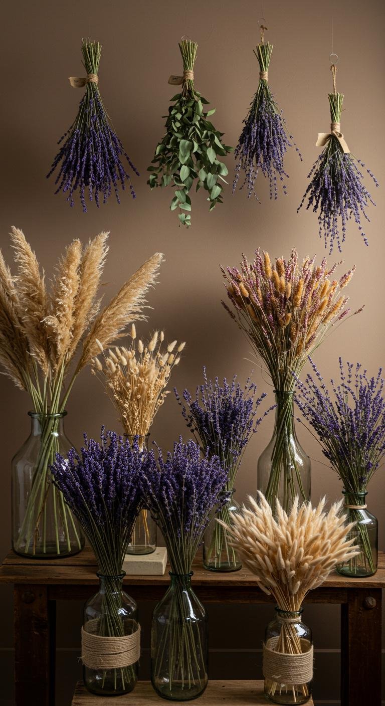 Combine pampas grass, lavender, and eucalyptus for a boho vibe that feels effortlessly chic.