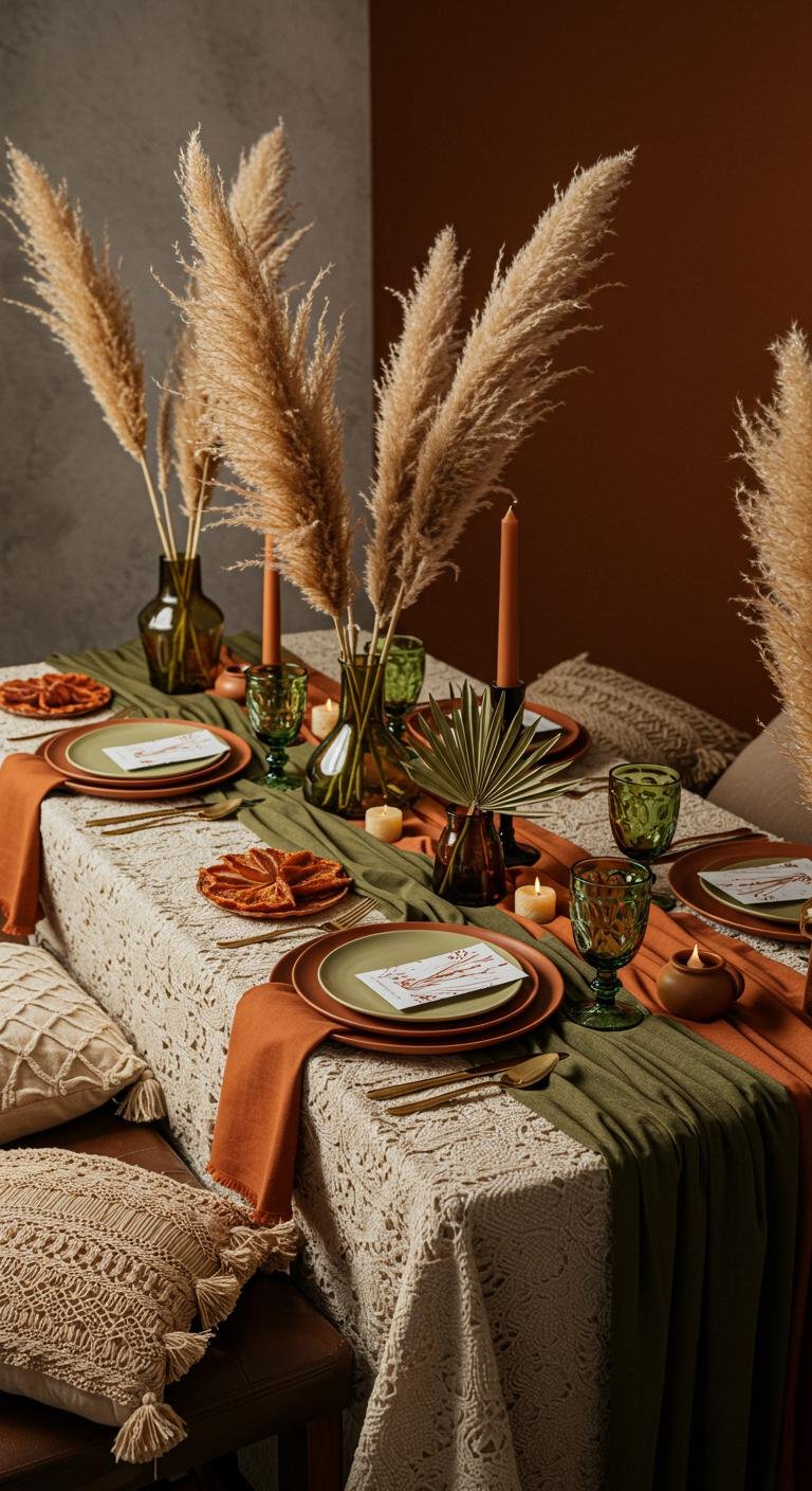 Pampas grass centerpieces set the perfect stage for embracing an earthy color palette that resonates with the boho aesthetic.