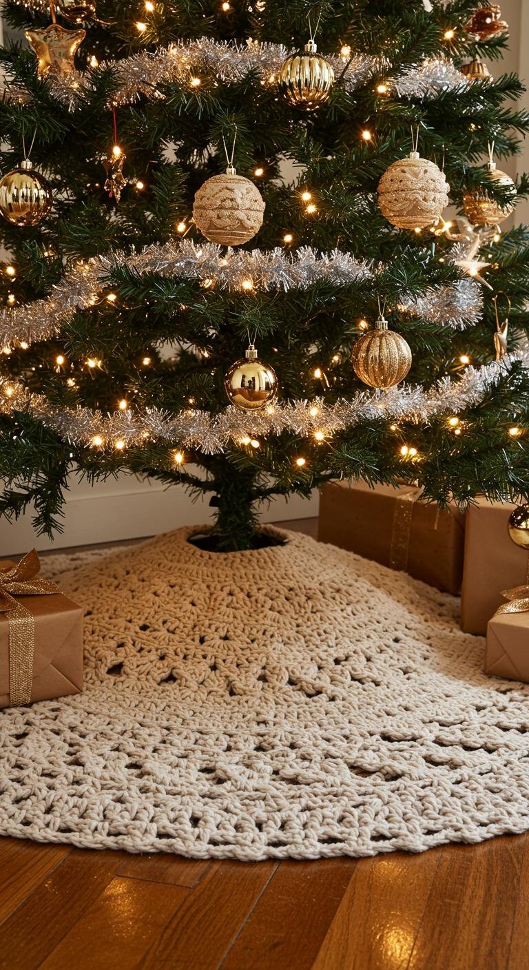 A crochet Christmas tree skirt adds a charming touch to your holiday decor, embodying the warmth and coziness of the boho aesthetic.