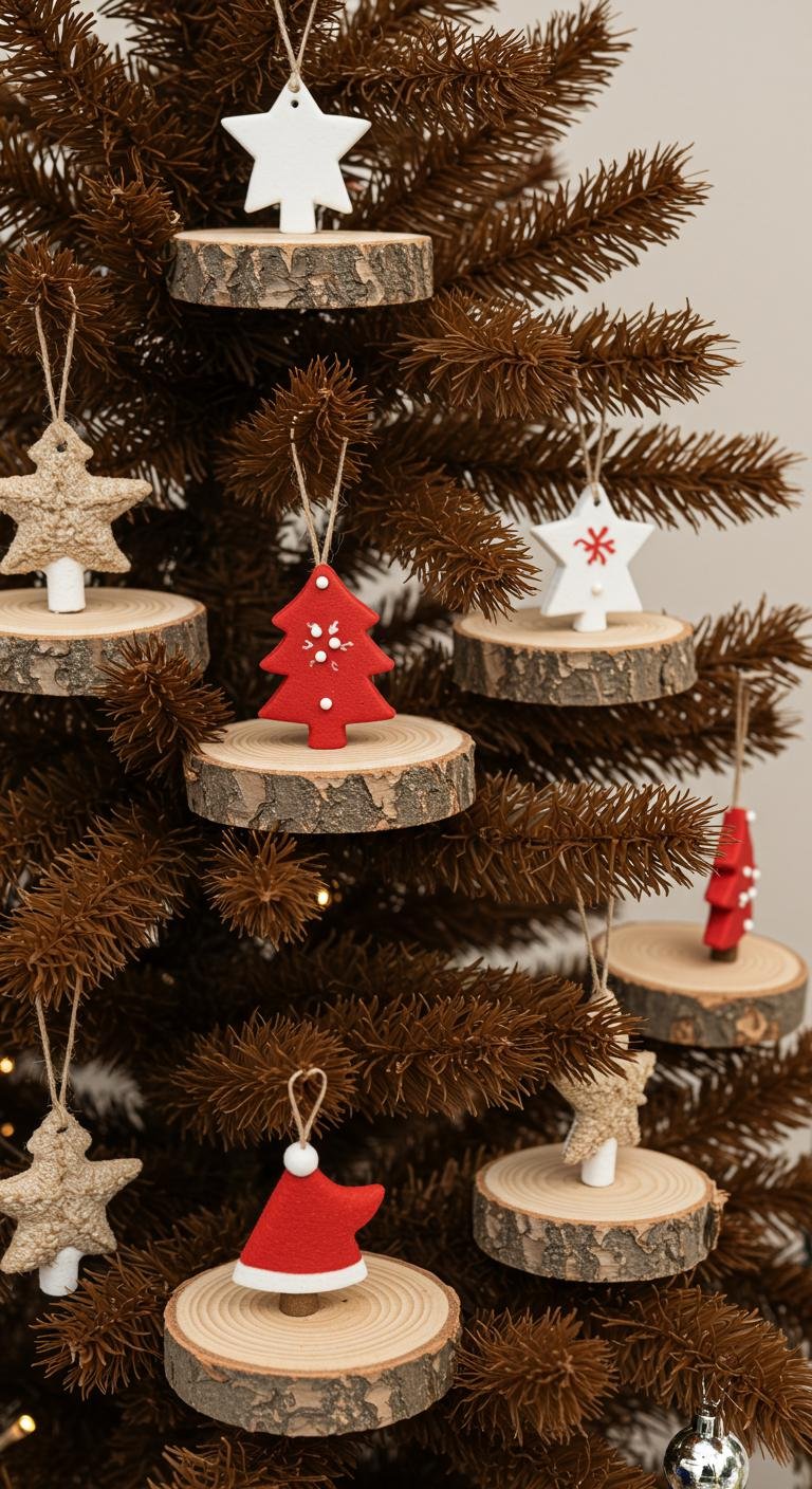 I love the idea of making your own decorations, and air-dry clay ornaments are the perfect way to get creative. Shape them into stars, circles, or whatever tickles your fancy. Leave them natural for that earthy mood or paint them soft brown tones. Want to add a bit of sparkle? A dash of glitter or metallic accents works wonders. Plus, they carry that heartfelt vibe that makes your tree extra special.