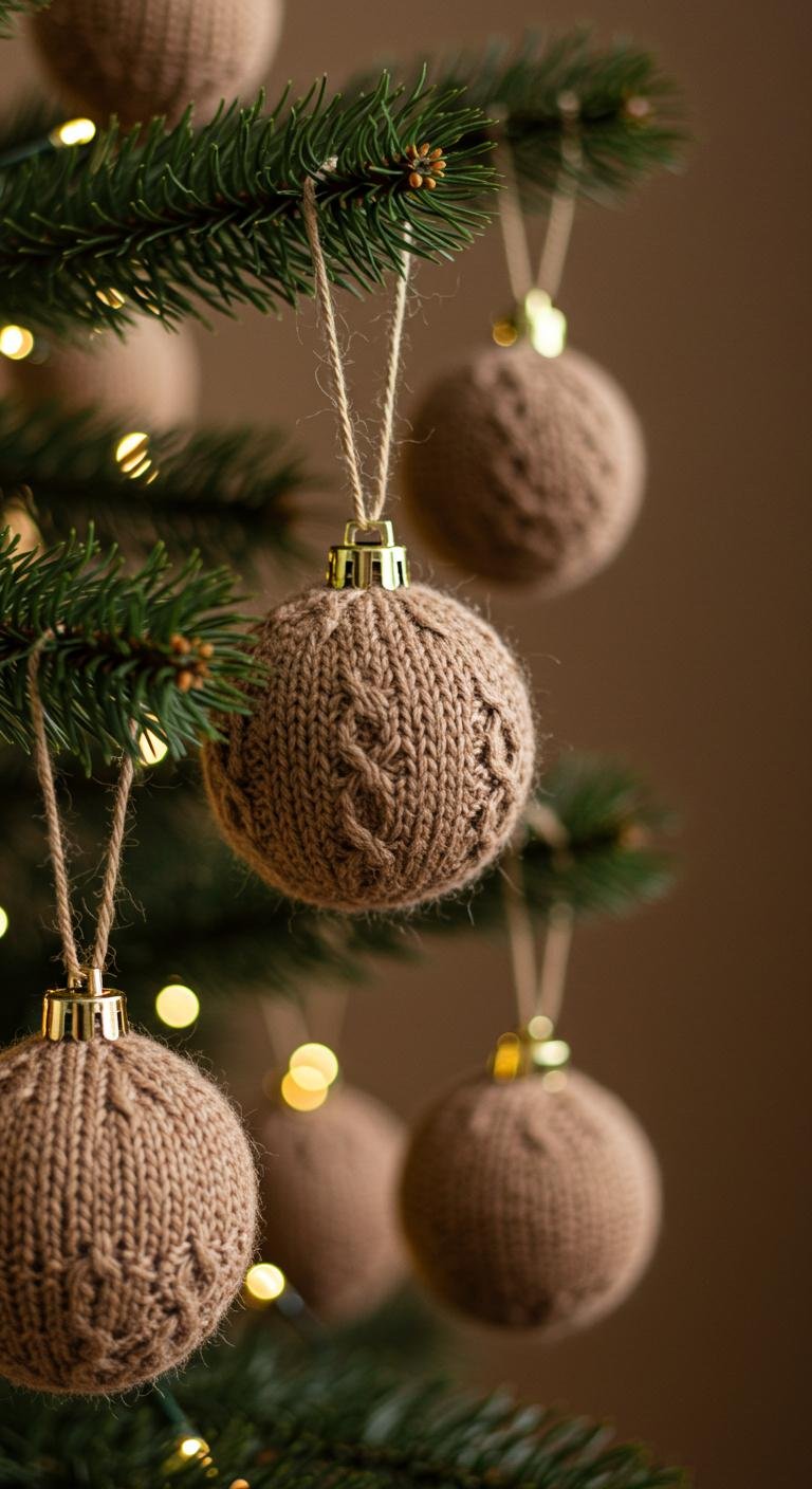 Knit ornaments are like a warm hug for your tree—textured, soft, and just plain cozy. If you’re a crafty soul, you can find plenty of patterns online to whip up your own using wool or soft yarn in earthy browns. Not into knitting? No worries! Holiday markets often have the cutest knit ornaments that feel handmade. And don’t toss out leftover yarn—it’s perfect for making little pom-poms to scatter around as playful accents.