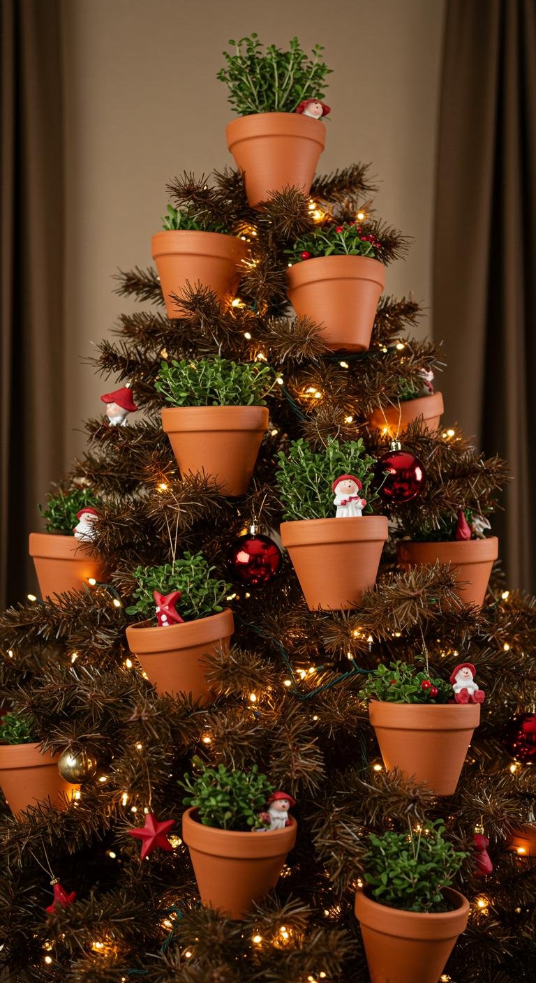 Terracotta might not be the first thing you think of for Christmas decor, but small pots and accents in these warm browns add such a nice twist. Fill tiny pots with festive greens, moss, or even candy canes for a sweet surprise. Painting these in coordinating brown shades ties the look together. Bonus: use them as little gift holders to wow your friends and family with a thoughtful, earthy touch.