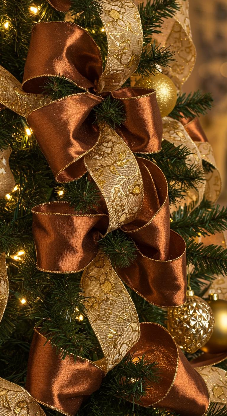 Ribbons totally change the game when decorating your tree. Go for warm metallic tones like matte gold or antique finishes—they add that perfect touch of elegance without making things too flashy. Layering different ribbon widths makes it visually exciting. Here’s a fun DIY: grab some burlap and sponge on gold designs yourself. Simple but it looks really charming, trust me.