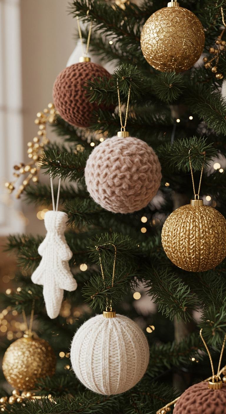 Velvet ornaments, knitted decorations, or felt DIYs add this amazing cozy feel to your tree. Sewing your own simple felt shapes can be a chill weekend project and totally affordable. These plush touches just up the comfort factor and make the whole tree feel snuggly.