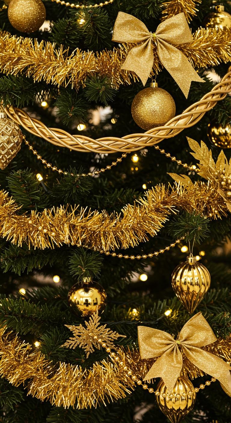 Integrating gold garlands or beads is an easy way to bring a warm glow to your tree. You can find these at craft stores on a budget—just drape a few strands along your branches and watch your tree come alive with warmth and sparkle. It’s that simple magic touch.