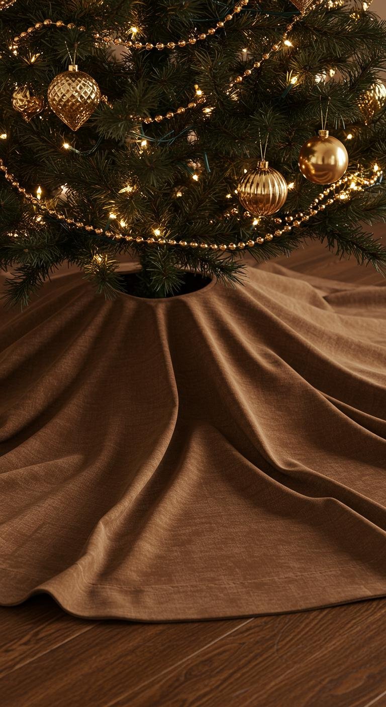 Don’t overlook your tree skirt! Choosing a textured fabric in warm browns or rustic burlap really finishes the look. If you’re into DIY, sew two fabrics together for something unique and cozy. It’s a great way to personalize your tree’s base while keeping things budget-friendly.