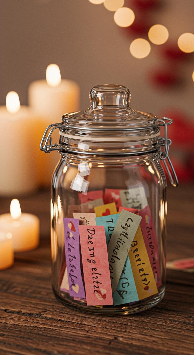 Want to sprinkle some spontaneity into your relationship? Fill a jar with creative date night ideas written on colorful slips of paper. From cozy movie marathons to fun game challenges or surprise picnics, it’s a gift that keeps giving. Dress up the jar with festive decorations and watch as planning dates turns into a playful adventure you both look forward to.