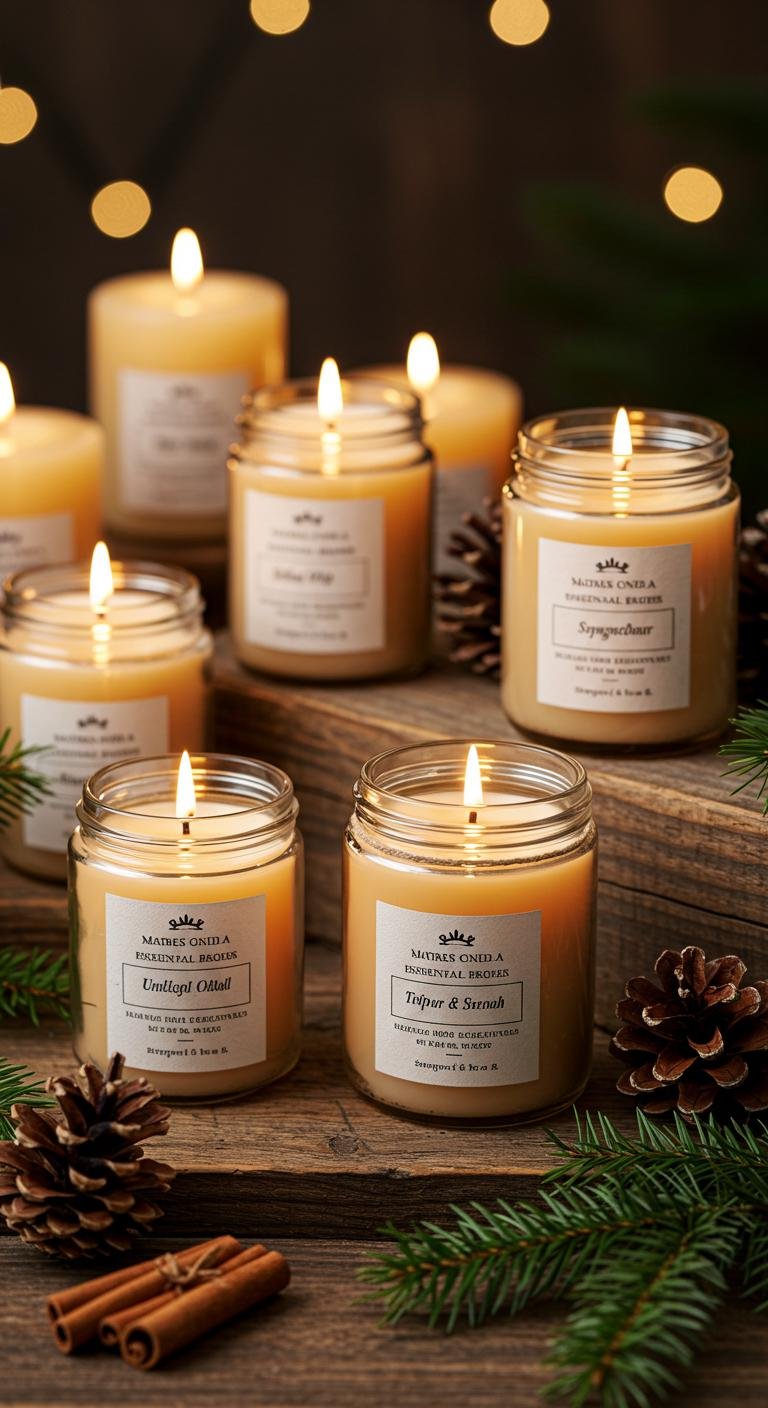 To make them feel really personalized, add custom labels or tie on little bits of leftover fabric or twine to decorate. These candles aren’t just gifts; they’re mood-setters that bring relaxation and festive charm to any home.