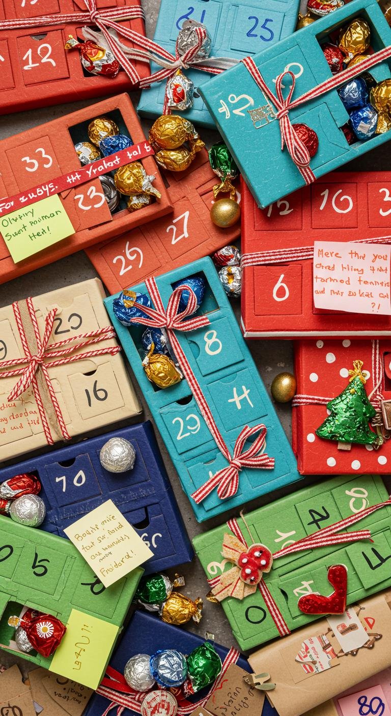 Make the lead-up to Christmas magical with homemade advent calendars. Use small pockets or containers filled with treats, notes, or tiny meaningful surprises—whatever feels right.
