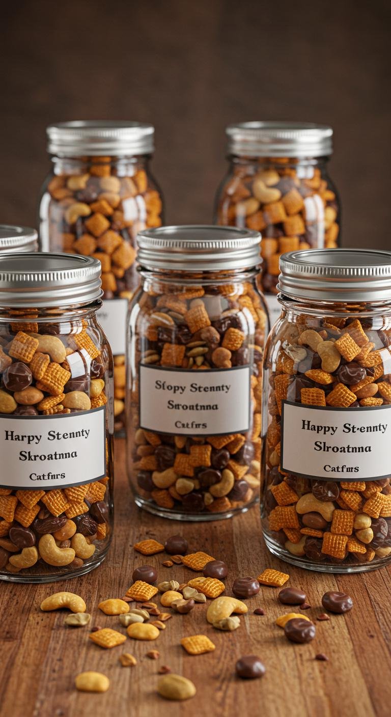 Mason jars filled with layered snacks are such a clever and colorful gift idea. Think nuts, popcorn, dried fruits, or candies, all stacked in a way that looks almost too pretty to eat. Toss on a festive tag with some serving tips, and you’re ready to impress teachers, coworkers, or anyone who loves a good nibble.