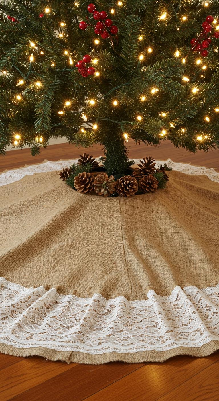 Want to give your Christmas tree a cozy finishing touch without spending much? Grab some burlap and cut it into a big circle to make your own rustic tree skirt. Add a bit of lace trim if you’re feeling crafty for that sweet, charming look. You can even weave in a few pine branches for extra natural flair. A handmade tree skirt not only saves money but also makes your tree feel extra personal and memorable.