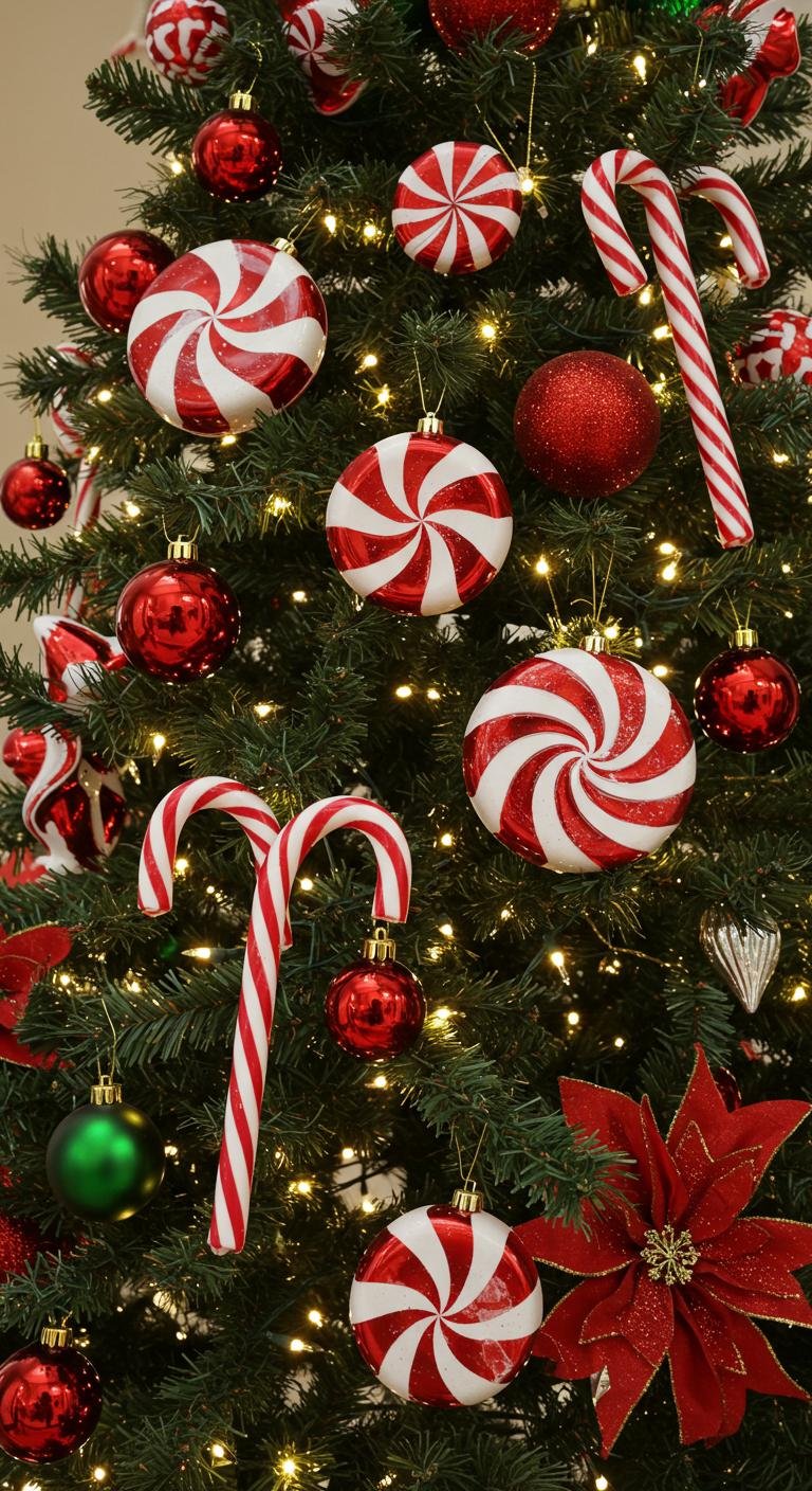 Embrace vibrant red and white stripes, hanging candy cane crafts, and twinkling lights. Incorporate candy cane traditions by adding playful elements like whimsical ornaments.