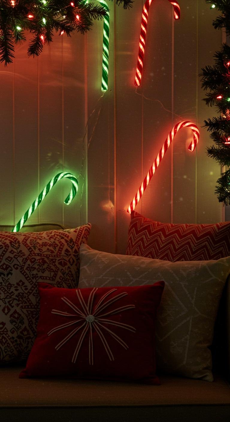 Pillows may set the scene, but it’s the twinkling candy cane lights that truly bring your holiday decor to life.
