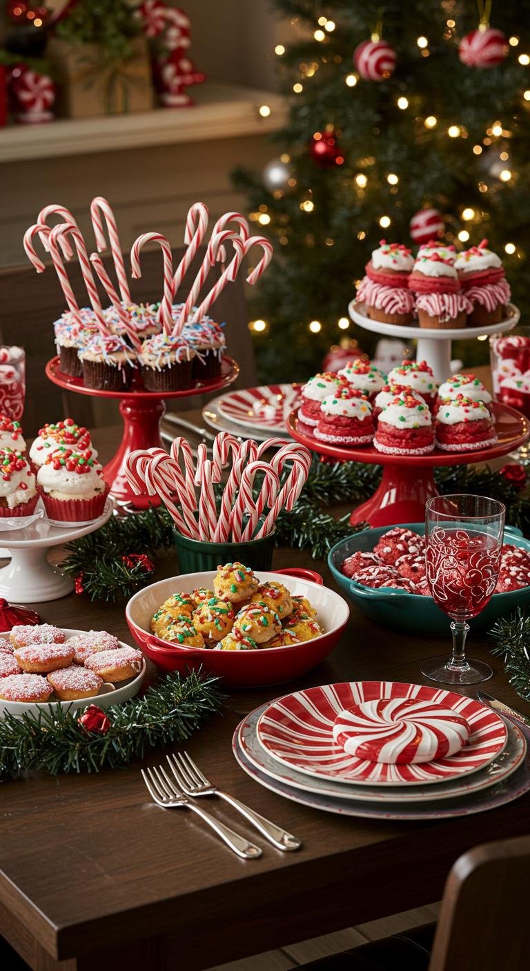 Use glass vases filled with candy canes, topped with twinkling lights—these festive candy cane colors will create a whimsical focal point, making your holiday gatherings unforgettable!