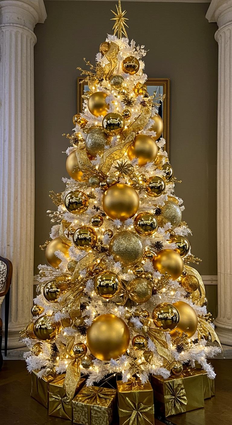If you’re all about that timeless vibe, starting with a solid white tree is your best friend. It’s like an instant chic base. Then, sprinkle on gold ornaments that mix shiny and matte finishes—this combo catches the eye without going overboard. A cool trick? Grab gold paint or glitter to jazz up old decorations for a fresh feel without splurging. White lights are a must here since they let the gold really shine. Don’t forget to space your decorations out evenly and play with different heights so the whole tree feels balanced and polished. And topping it off with a golden star? Chef’s kiss.