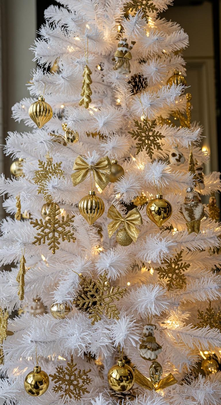 If you love a theme, why not lean into a winter wonderland vibe? White-based decorations with gold highlights like snowflakes, icicles, and twinkling stars bring that magical feeling. DIYing paper snowflakes or repurposing recycled materials can add a fun creative twist. This theme fits perfectly with your white and gold setup, letting you show off personal style without crowding the tree.