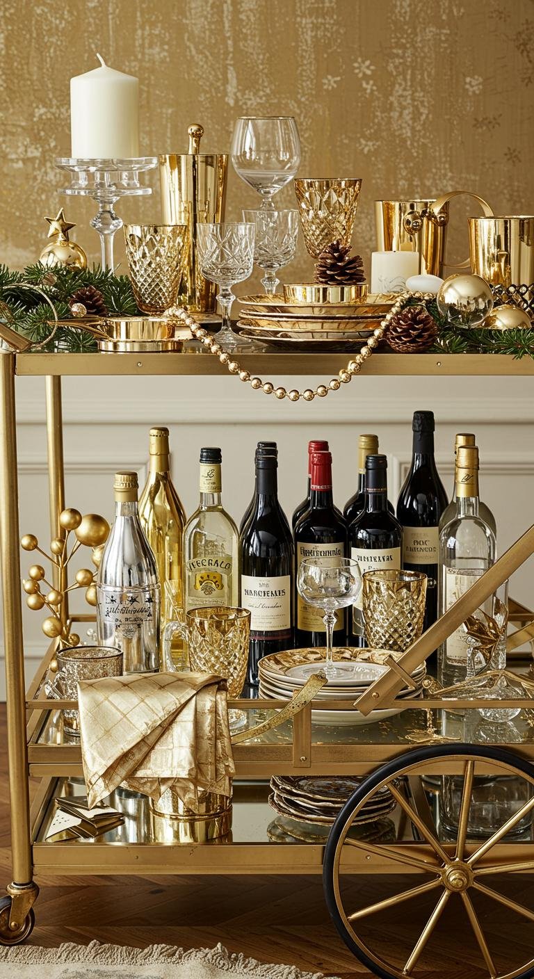 When it comes to styling your Christmas bar cart, incorporating elegant gold accents can elevate the entire festive atmosphere.