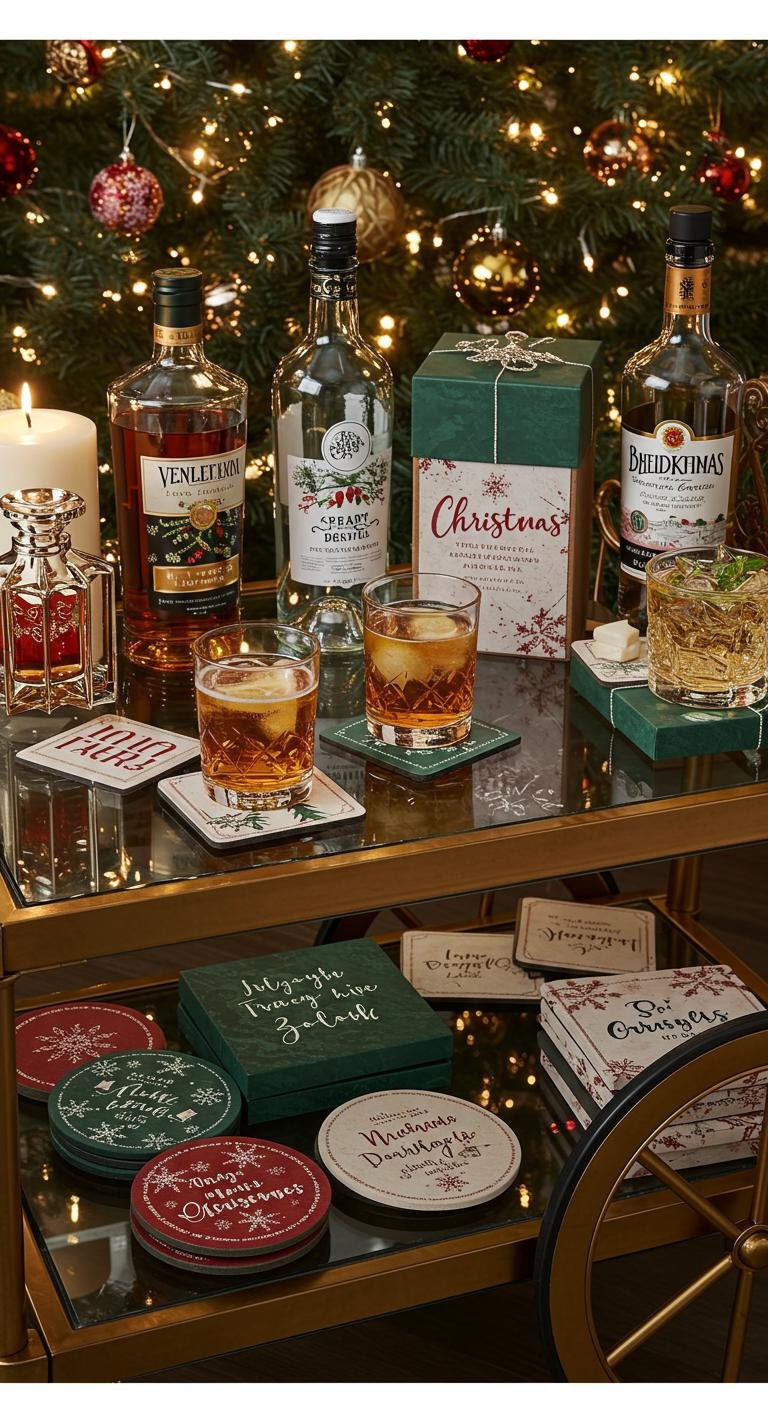 As you deck out your holiday bar cart, don’t overlook the charm of holiday-themed coasters.