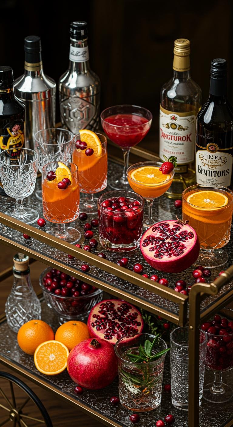 Adding seasonal fruits and berries to your bar cart instantly brings a burst of color and vitality to your festive display.