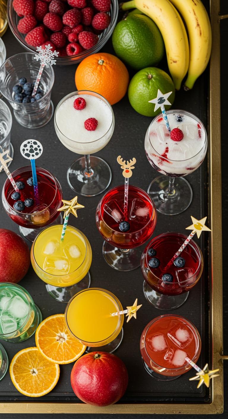 Mix up some colorful festive mocktails using seasonal fruits and herbs, incorporating ingredients like pomegranate or rosemary.
