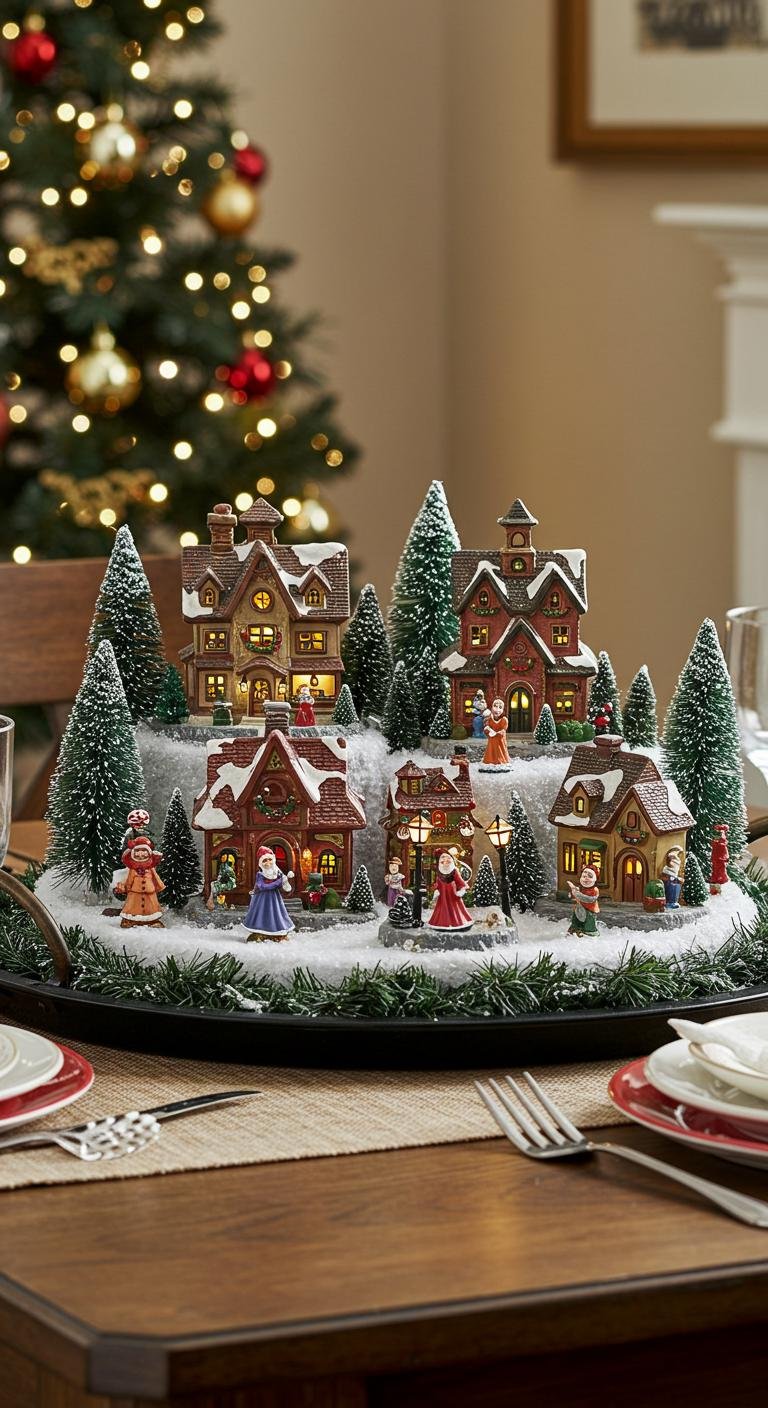 Transform your holiday table into a whimsical winter wonderland by arranging a charming Christmas village scene on a tray.