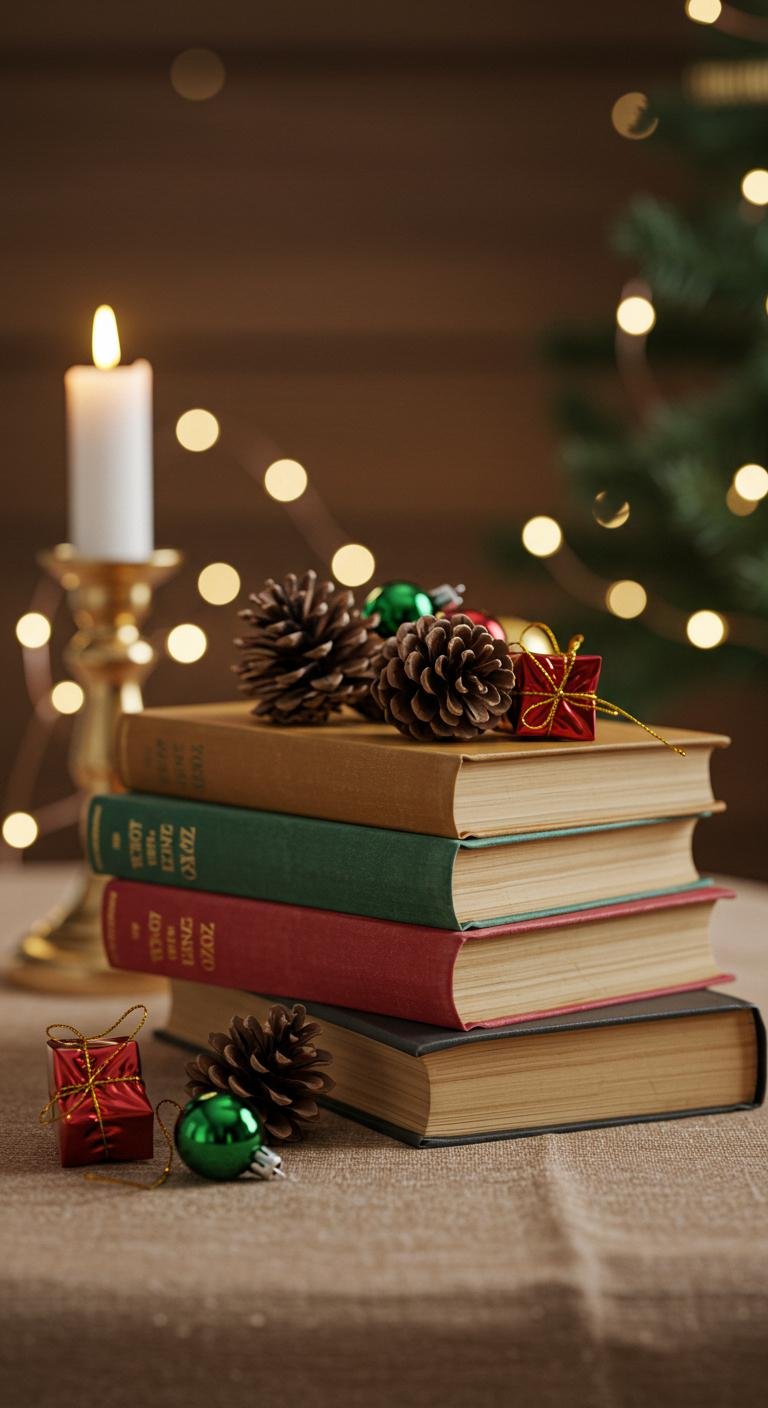 Immerse yourself in the charm of the holiday season by creating a vintage book stack centerpiece that adds a touch of nostalgia to your table. Select beautiful, worn books with festive colors and themes, topping them with charming holiday accents like pinecones or small ornaments. This vintage decor not only captures the spirit of holiday reading but also sparks conversations, inviting warmth and cheer.