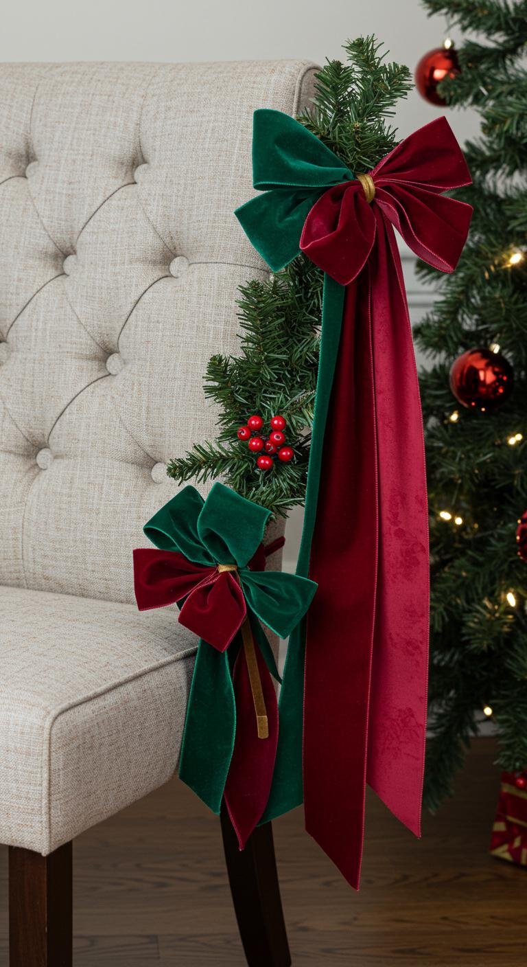 Bows instantly elevate your holiday decor, infusing chairs with a touch of elegance and whimsy.