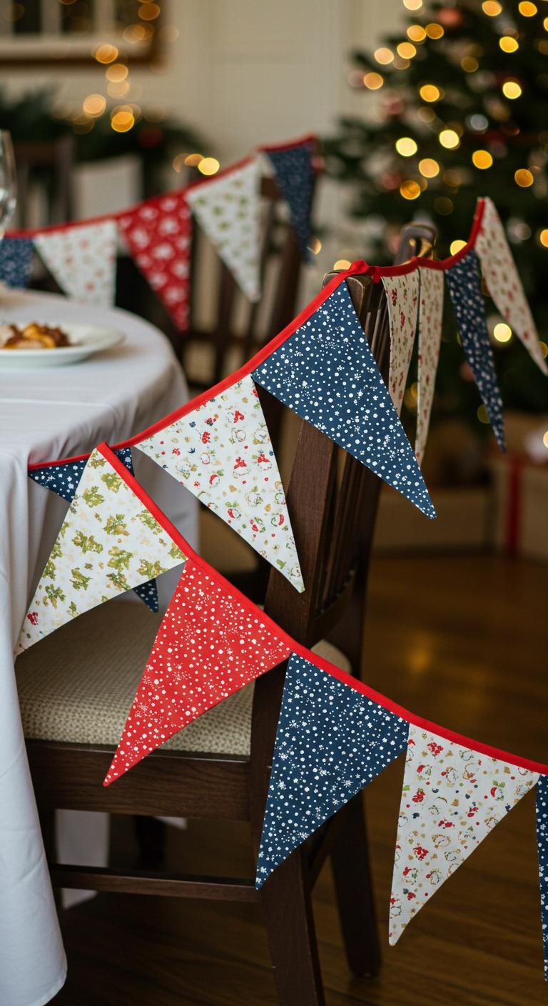 Transform your holiday space with delightful fabric bunting that dances with color and charm.