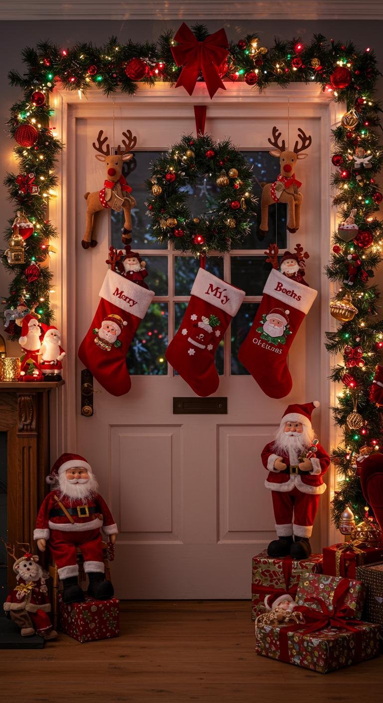 Hang playful stockings filled with surprises, drape cheerful reindeer around your door, and light up the night with festive lights.