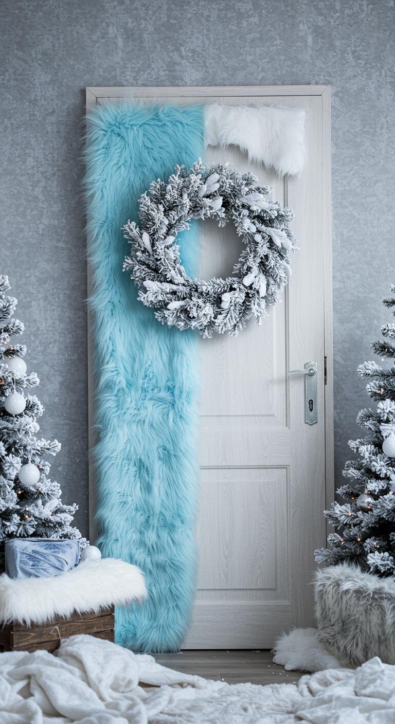 Drape furry accents on your door wreath or surrounding frames, creating a cozy escape that beckons guests to step inside and embrace the magic of the season.