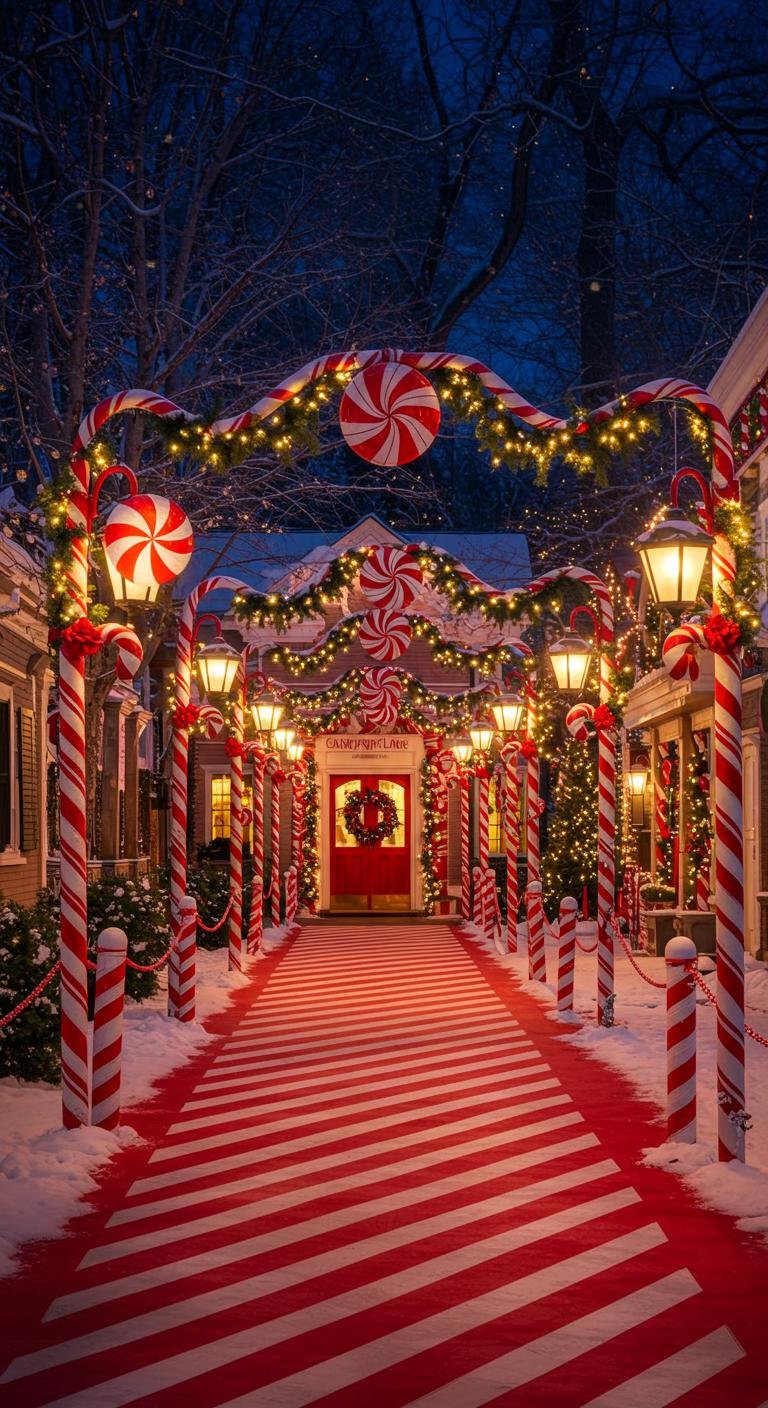 Twinkling lights wrap around each pole, casting a festive glow over your enchanting candy cane pathways, inviting joy and cheer to all who enter.