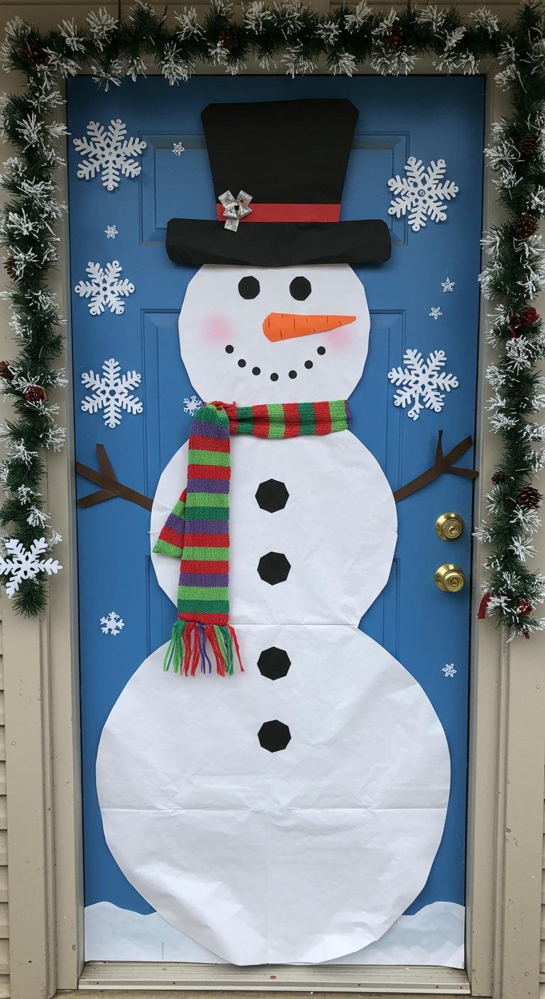 Embrace the magic by adorning your entrance with delicate snowflake patterns, shimmering in the light. Use glittery accents to create a dazzling effect, transforming your door into a winter wonderland.