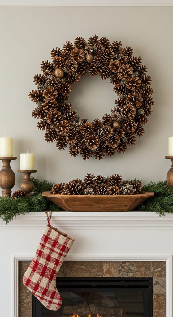 Incorporating natural elements, especially pine cones, can elevate your mantel decor to a new level of rustic charm.
