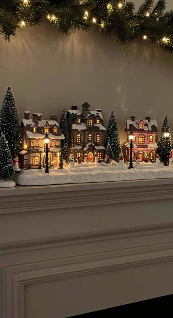 Building on the enchanting glow of fairy lights, you can bring an entirely new dimension to your mantel with a themed holiday village.