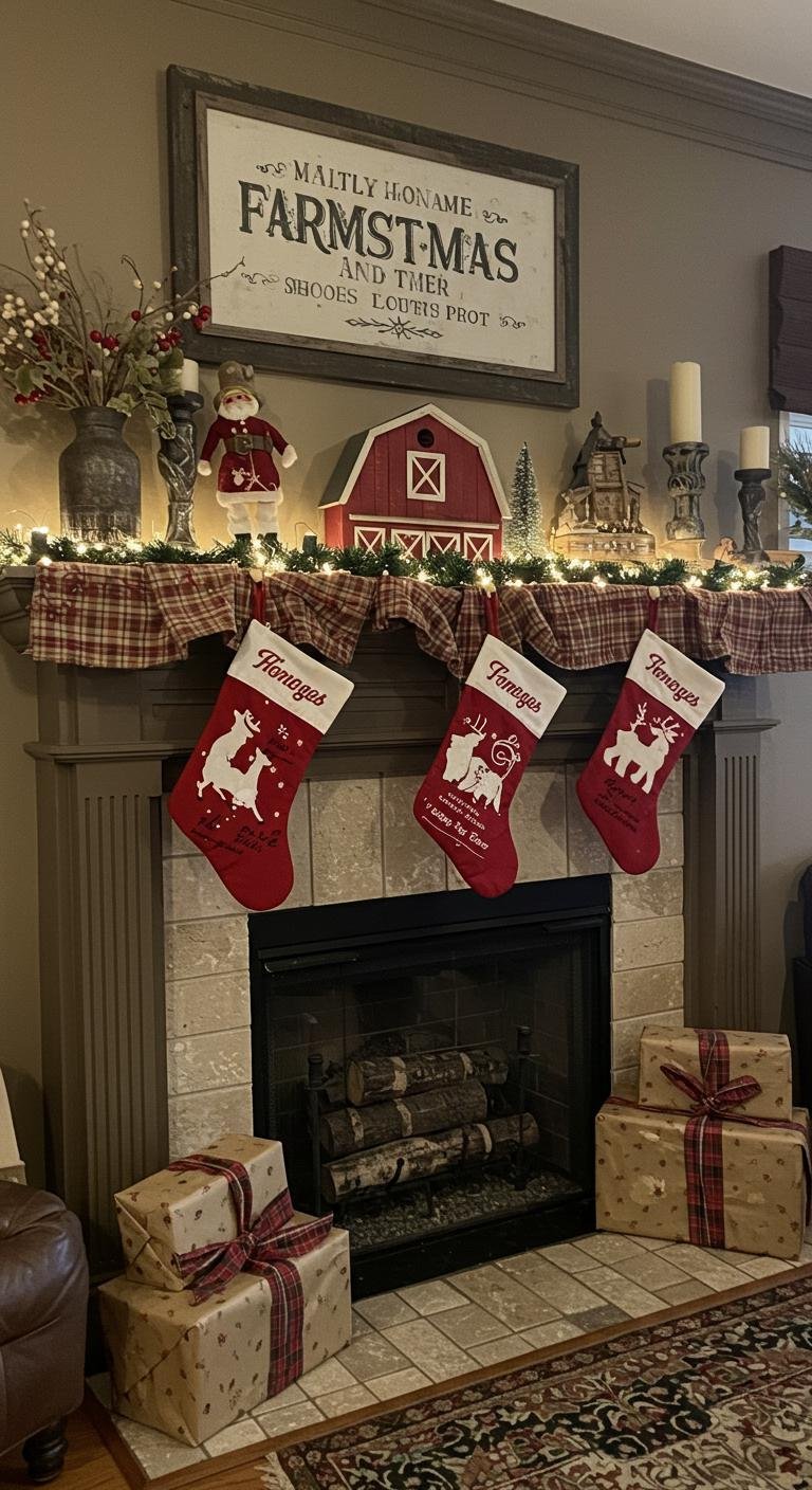 After embracing the classic red and green elegance, you might want to explore a warmer, more organic vibe with rustic farmhouse charm.