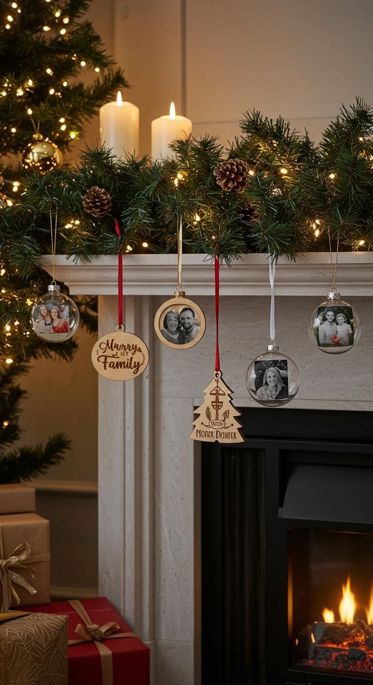 As you gather around the warmth of your mantel, adding personalized family ornaments can make your decor truly special.