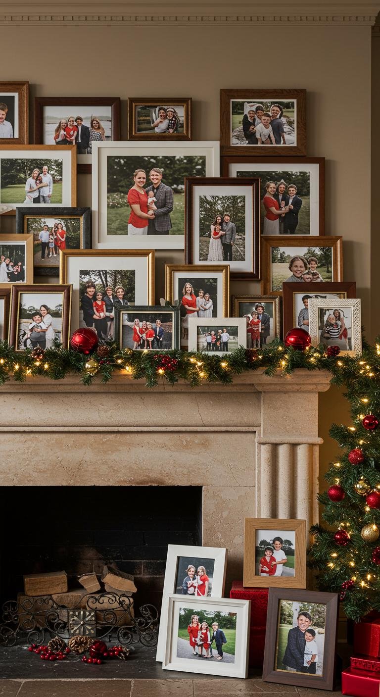 These snapshots transform your space into a heartfelt holiday memory display, showcasing framed family traditions.